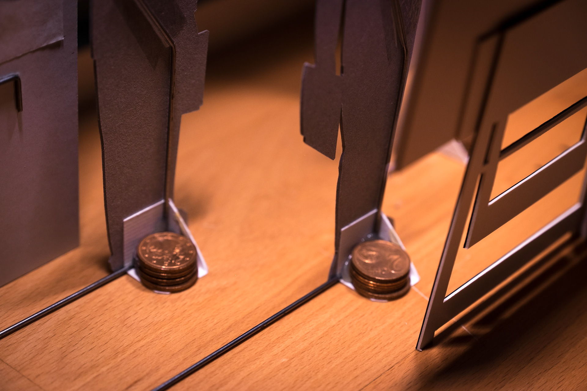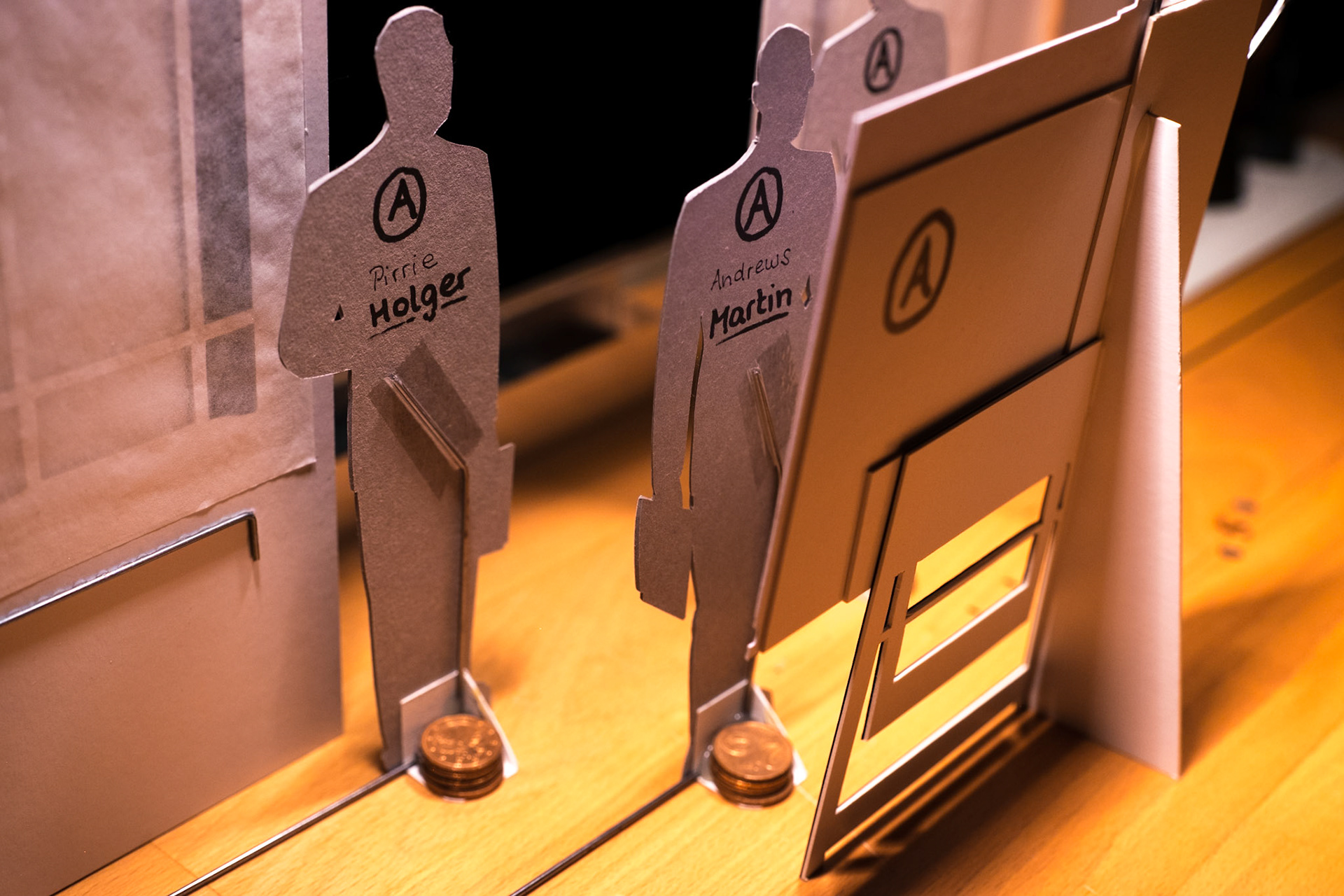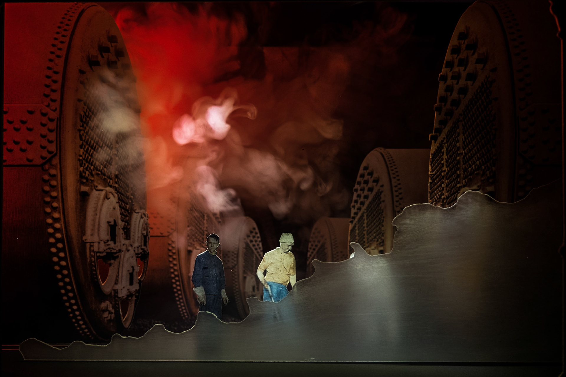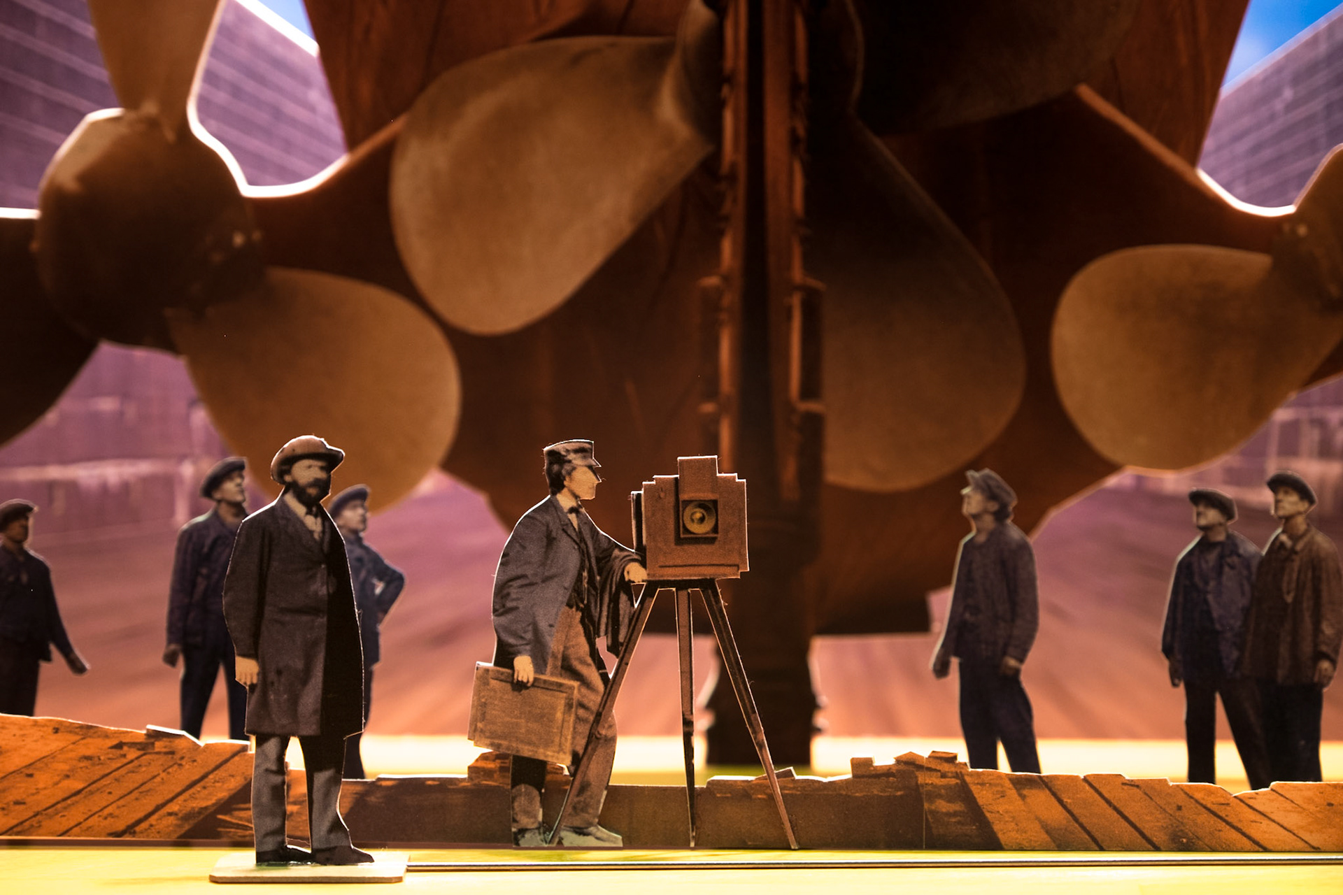 Für diese Papiertheaterinszenierung wurde sorgfältig recherchiert und wurden selbst neueste Forschungsergebnisse in die Gestaltung einbezogen. Die Bühnenbilder entstanden in enger Anlehnung an historisches Bildmaterial, wurden neu koloriert und dreidimensional in Szene gesetzt.